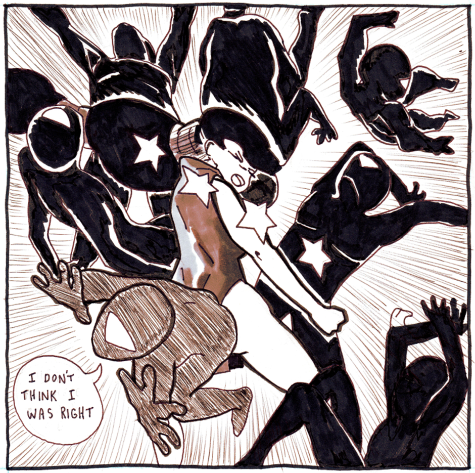This downloadable PDF is a mini that is meant to be printed. When printed, you get 2 of this 24 page comic. The color is a subtle sepia tone, but can also be printed in black and white. Print double-sided to output 6 pieces of 8.5 x 11 paper. The comics are minis (5.5x4.25"), which requires one cut to divide the 11" side.
